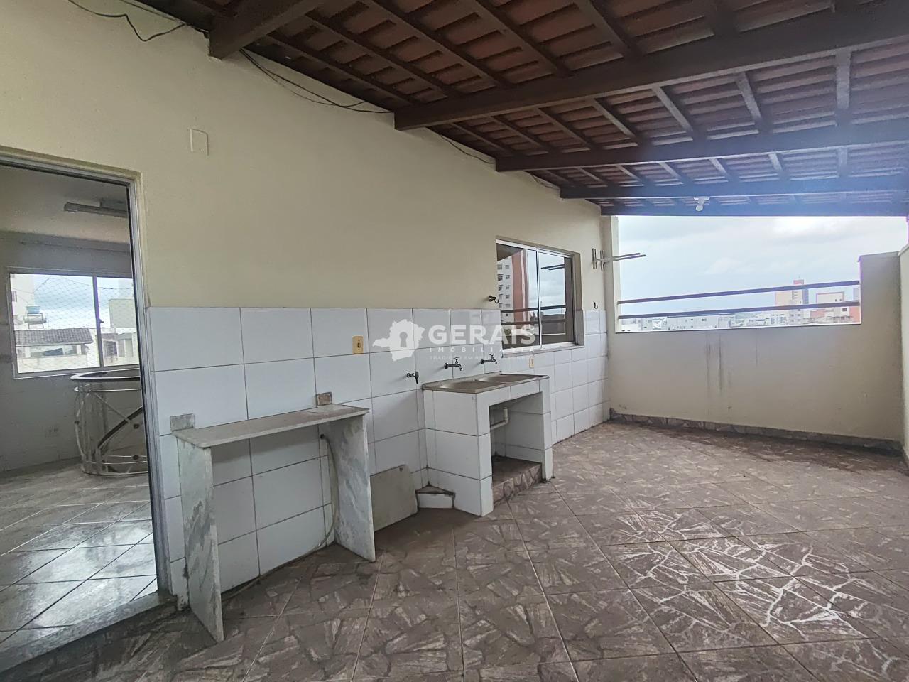 APTO COBERTURA COM: SALA, 03 QUARTOS SENDO 02 COM ARMÁRIO, 02 SUÍTE COM ARMÁRIO BOX E ESPELHO, BANHO SOCIAL COM ARMÁRIO E ESPELHO, COZINHA COM ARMÁRIO BANCADA E COIFA, ÁREA DE SERVIÇO, SACADA, INTERFONE, ESCADA, LUMÍNARIA, PORTÃO ELETRÔNICO, TETO EM GESSO, PISO EM GRANITO E CERÂMICA, APROX. 90M².